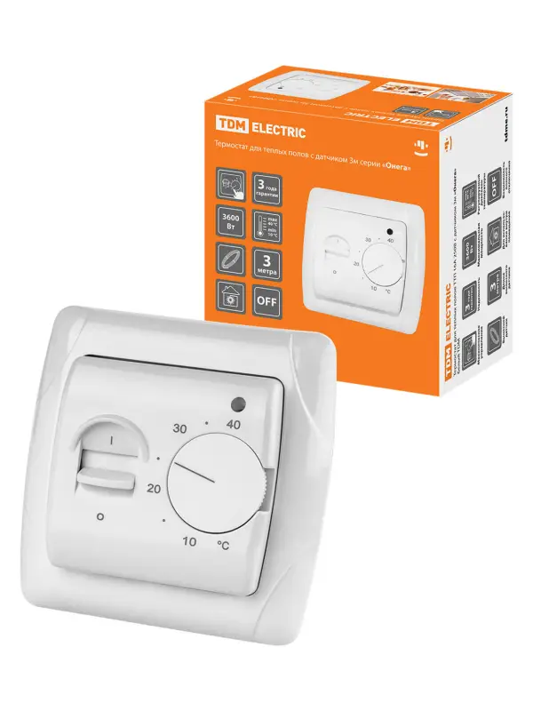 Термостат для теплых полов ТТП 16А 250В с датчиком 3м "Онега" белый TDM