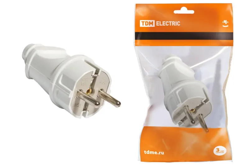 Вилка прямая с/з белая 16А 250В TDM