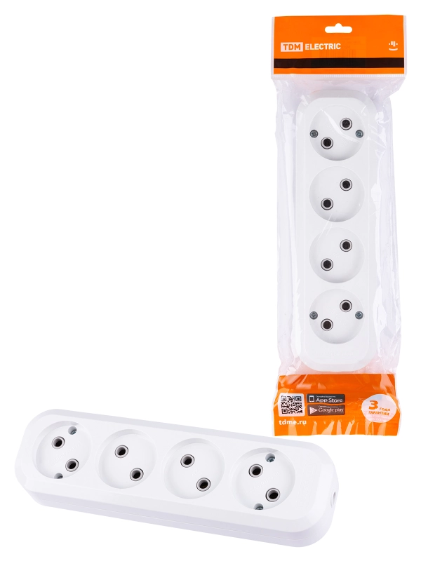 Колодка розеточная 4 гнезда 2П б/з 10А 250В белая TDM