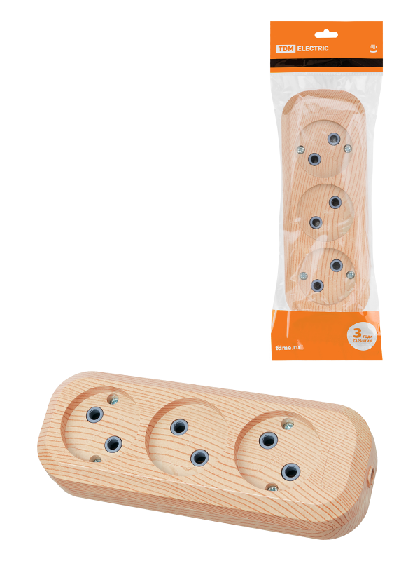 Колодка розеточная 3 гнезда 2П б/з 10А 250В "Эко" (сосна) TDM