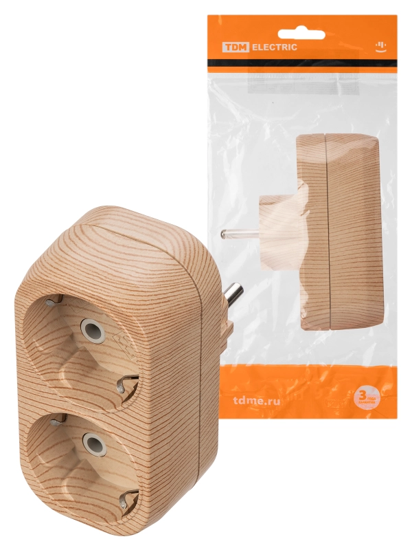 Блок на 2 гнезда 2П+З плоский 16А 250B "Эко" (сосна) TDM