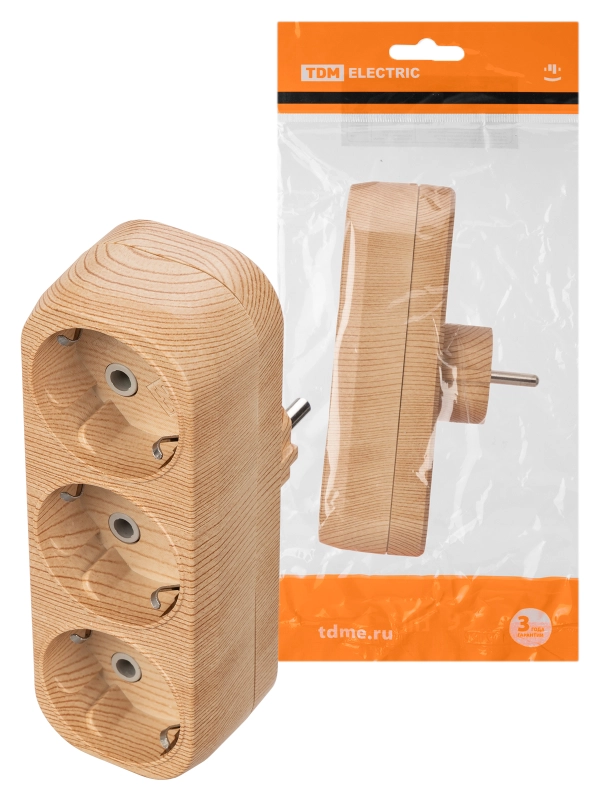 Блок на 3 гнезда 2П+З плоский 16А 250B "Эко" (сосна) TDM