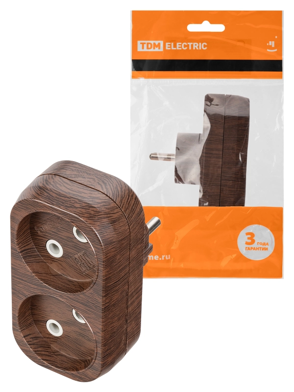 Блок на 2 гнезда 2П б/з плоский 6А 250B "Эко" (бук) TDM