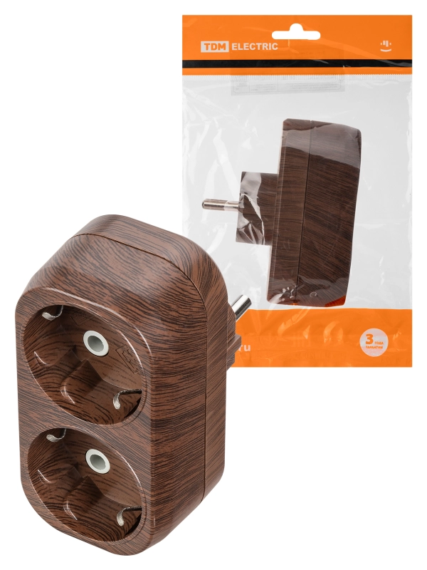 Блок на 2 гнезда 2П+З плоский 16А 250B "Эко" (бук) TDM