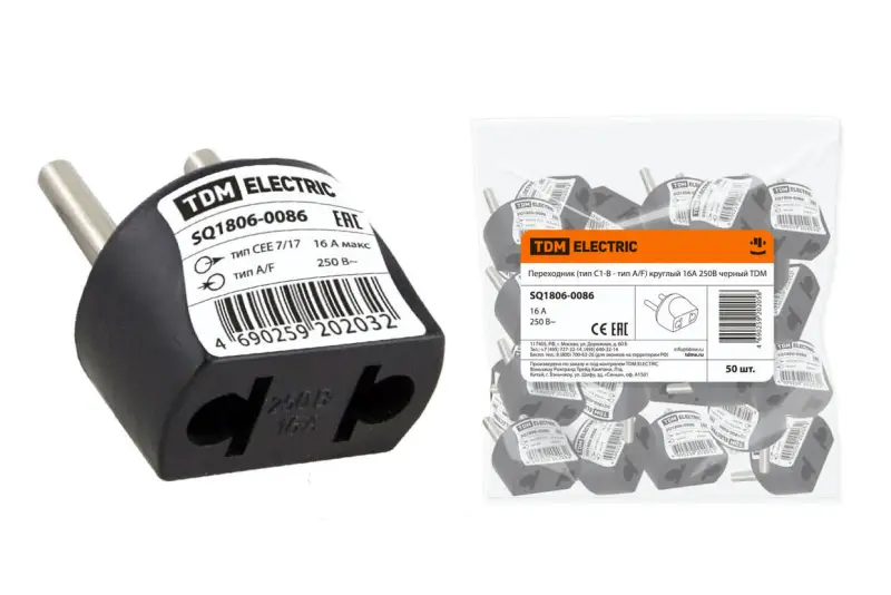 Переходник (тип С1-В - тип A/F) круглый 16A 250В черный TDM