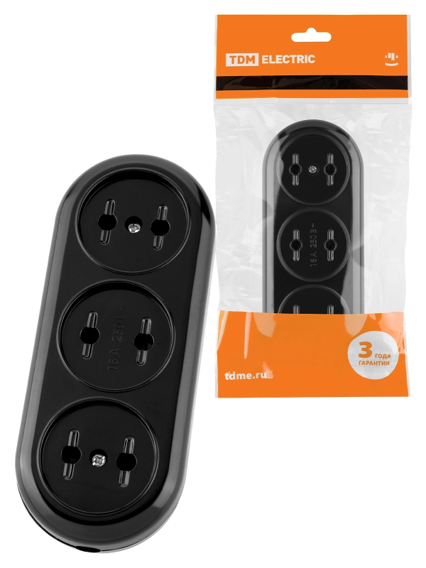 Розеточная колодка 3 гнезда 2П 16А макс. "Ретро" 250B (карболит) TDM