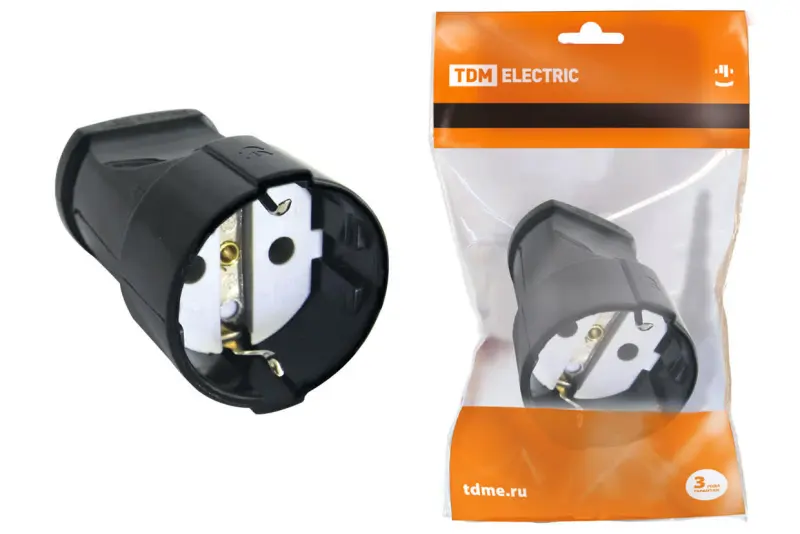 Кабельная розетка 2П+3 16А 250B черная TDM