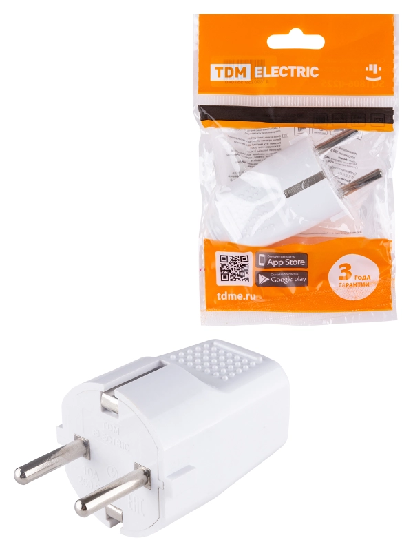 Вилка прямая с/з белая c перфорацией 10А 250В TDM