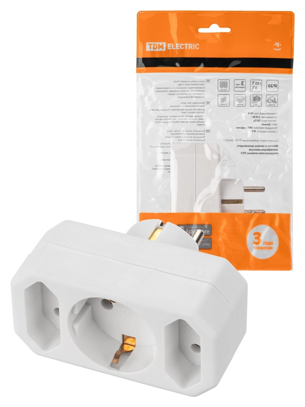 Блок на 3 гнезда: 1x2П+3 16 А + 2х2П 2,5 А под плоскую вилку 250 B белый TDM