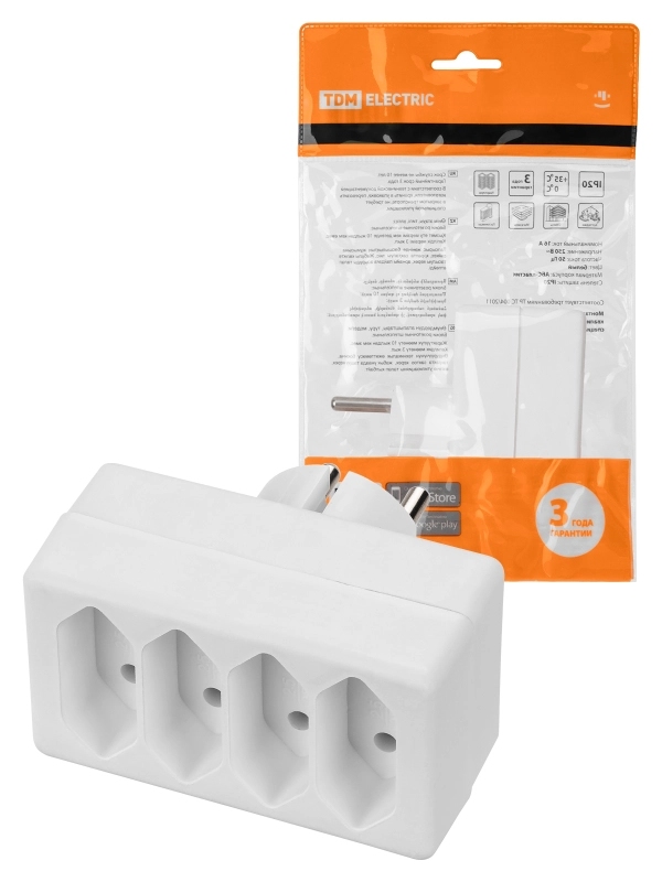 Блок на 4 гнезда 2П 2,5 А 250 B под плоскую вилку белый TDM