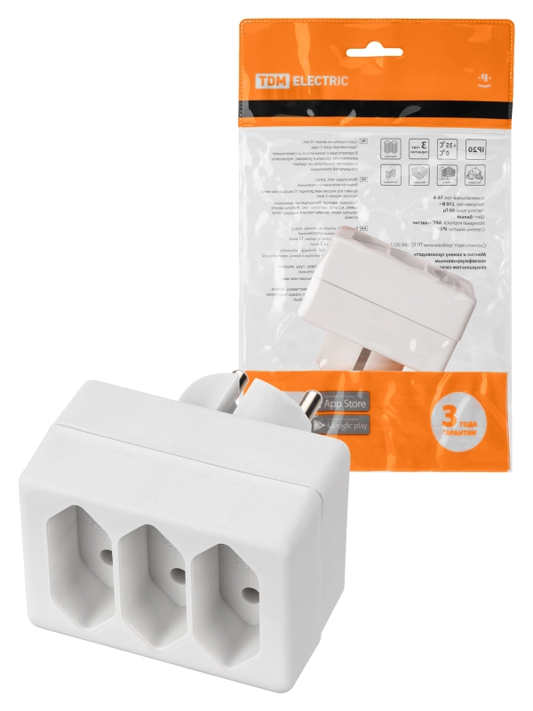 Блок на 3 гнезда 2П 2,5 А 250 B под плоскую вилку белый TDM
