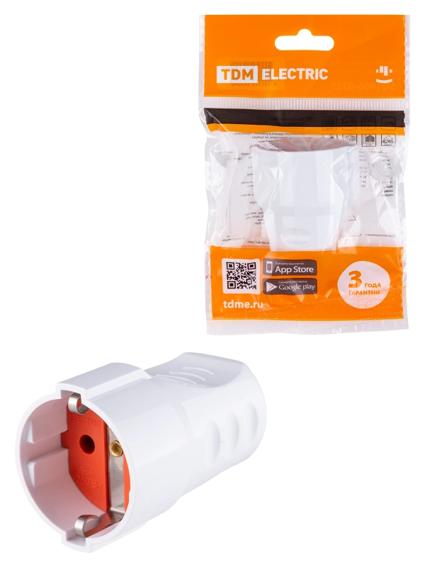 Кабельная розетка рифленая 2П+З 16А 250B белая TDM
