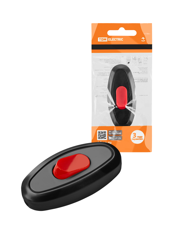 Выключатель на шнур 6А 250В черный с красной кнопкой TDM