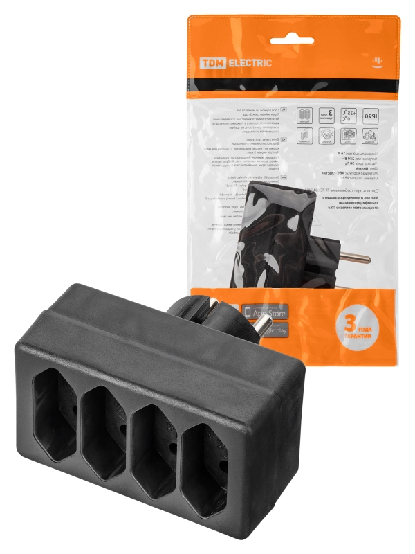 Блок на 4 гнезда 2П 2,5 А 250 B под плоскую вилку черный TDM
