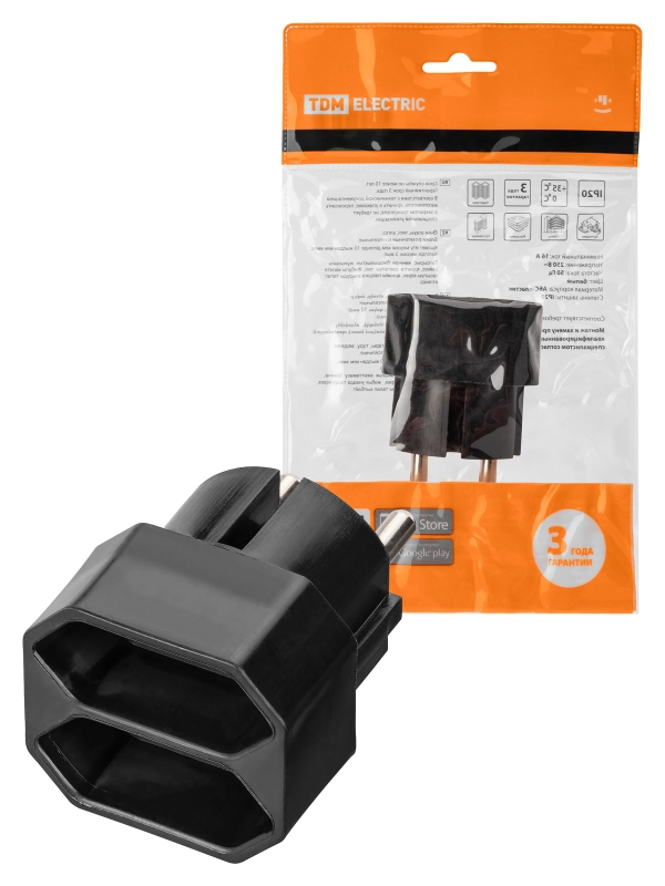 Блок на 2 гнезда 2П 2,5 А 250 B под плоскую вилку черный TDM