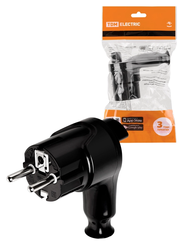 Вилка угловая c/з черная с кнопкой извлечения из сети 16А 250В TDM