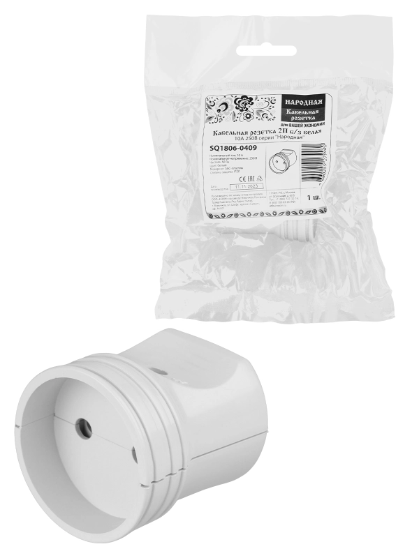 Кабельная розетка 2П б/з белая 10А 250B серии "Народная"