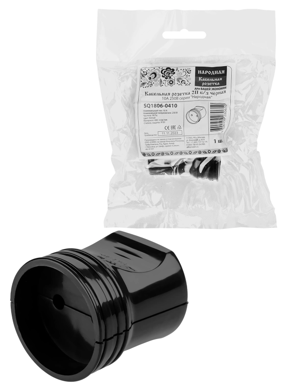 Кабельная розетка 2П б/з черная 10А 250B серии "Народная"
