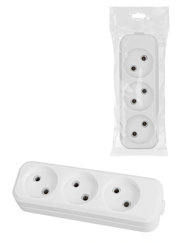 Колодка розеточная 3 гнезда 2П б/з 10А 250В белая серии "Народная"