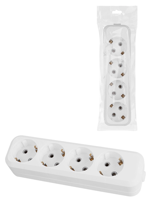 Колодка розеточная 4 гнезда 2П+3 16А 250В белая серии "Народная"