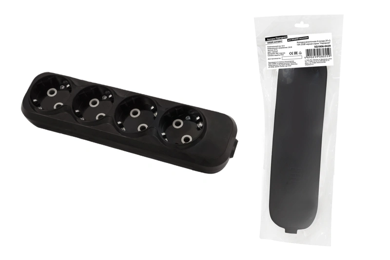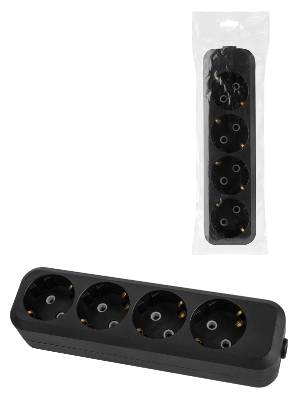 Колодка розеточная 4 гнезда 2П+3 16А 250В черная серии "Народная"