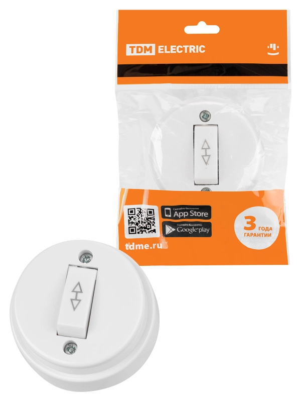 Переключатель на 2 направления 1-кл. открытой установки IP20 10А белый "Ретро" TDM