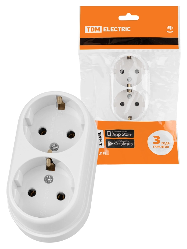 Розетка двойная 2П+3 открытой установки IP20 16А белая "Ретро" TDM