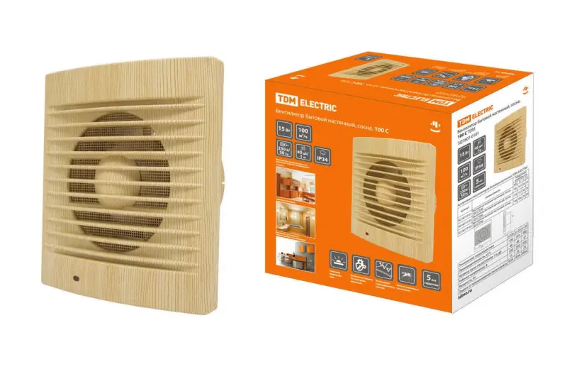 Вентилятор бытовой настенный, 100 С "ЭКО" (сосна) TDM