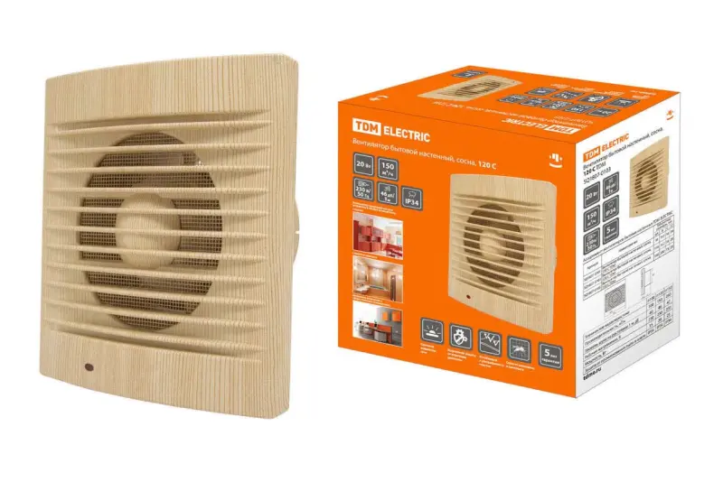 Вентилятор бытовой настенный, 120 С "ЭКО" (сосна) TDM