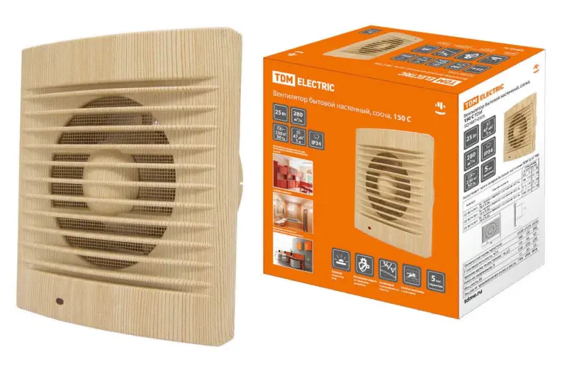 Вентилятор бытовой настенный, 150 С "ЭКО" (сосна) TDM
