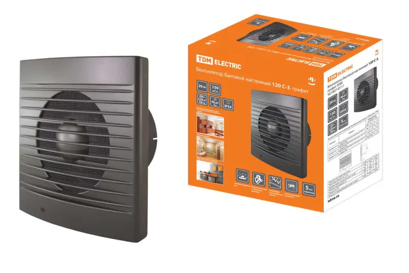Вентилятор бытовой настенный 120 С-3, графит TDM