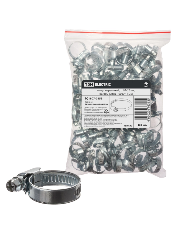TDM Хомут червячный, d 20-32 мм, оцинк (упак. 100 шт)