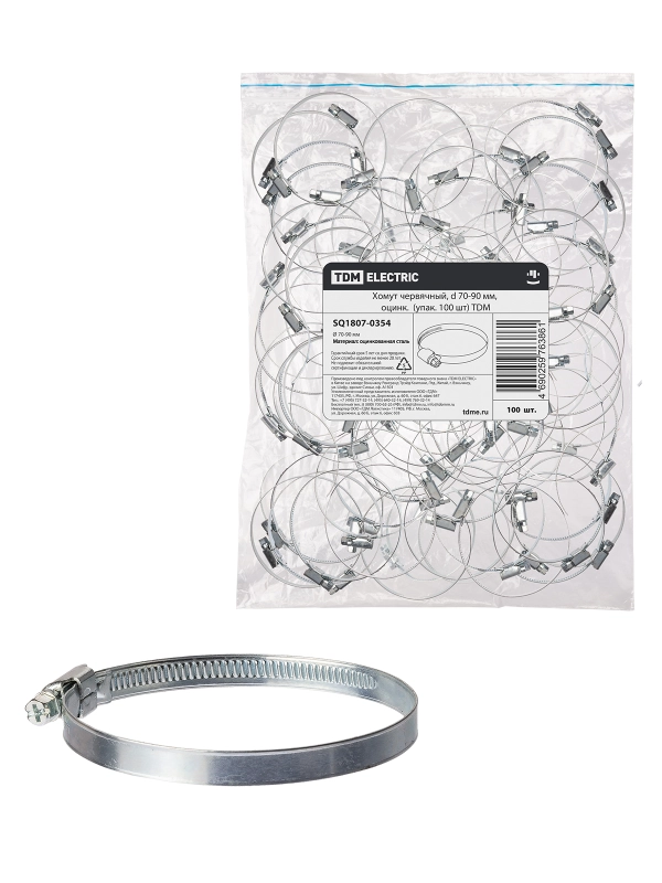 TDM Хомут червячный, d 70-90 мм, оцинк (упак. 100 шт)