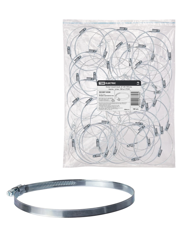 TDM Хомут червячный, d 120-140 мм, оцинк (упак. 100 шт)