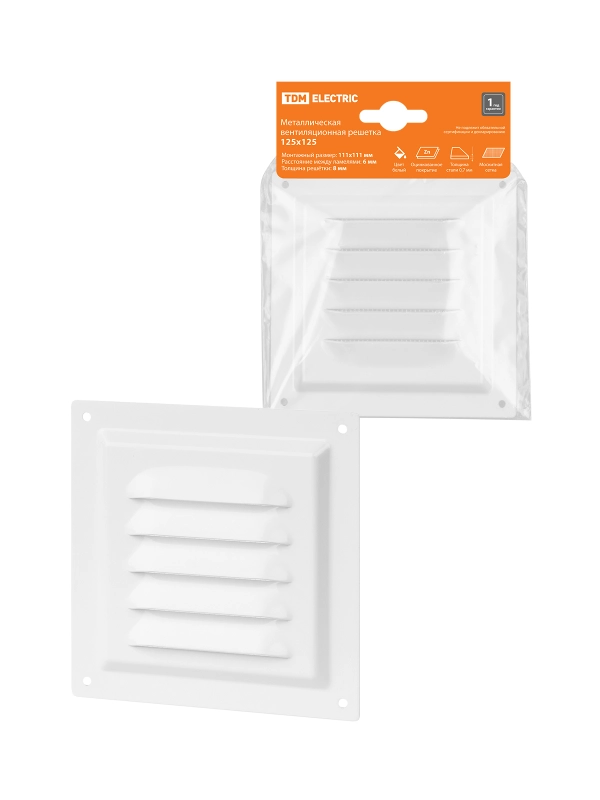 Решетка металл. 125х125, белая, с покрытием полимерной эмалью, TDM