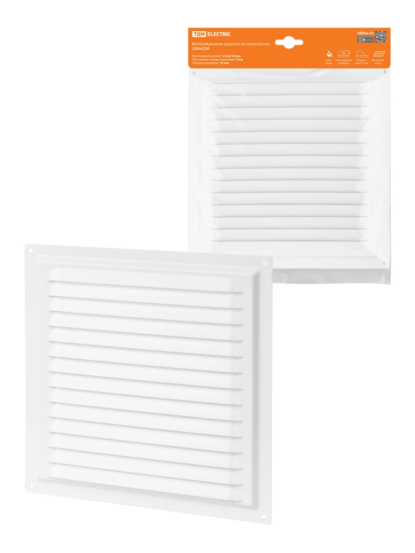 Решетка металл. 250х250, белая, с покрытием полимерной эмалью, TDM