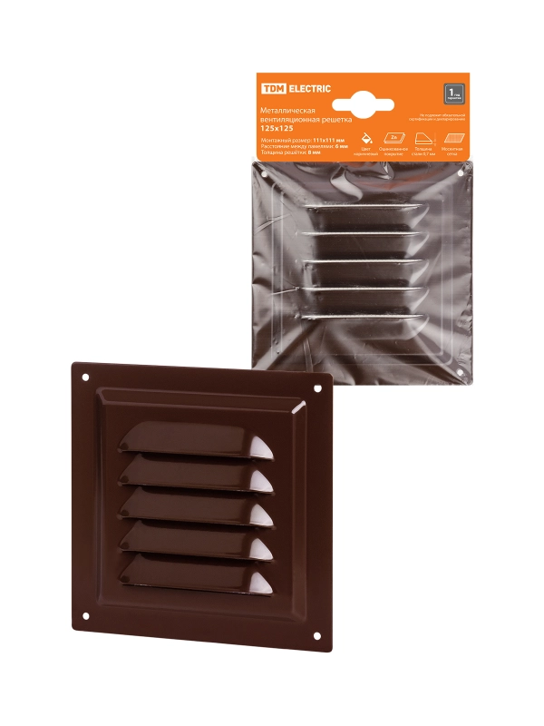 Решетка металл. 125х125, коричневая, с покрытием полимерной эмалью, TDM