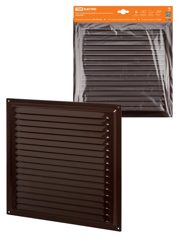 Решетка металл. 300х300, коричневая, с покрытием полимерной эмалью TDM