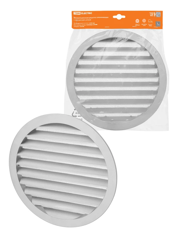 Решетка вентиляционная круглая алюминиевая с москитной сеткой, с фланцем d250, внеш. D275, TDM