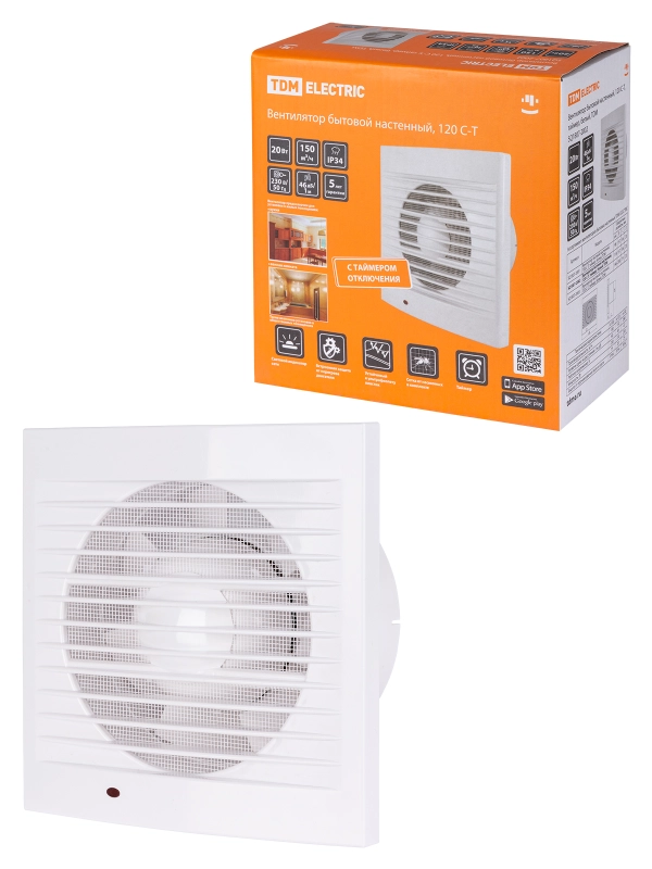 Вентилятор бытовой настенный, 120 С-Т, таймер, белый, TDM