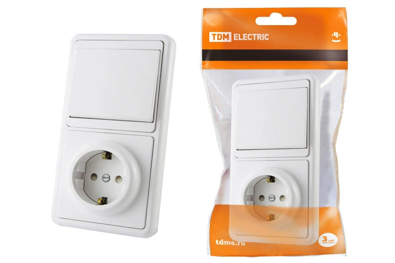 Блок комбинированный БКВР 1-но кл. выкл + розетка 2П+З с з/ш TDM