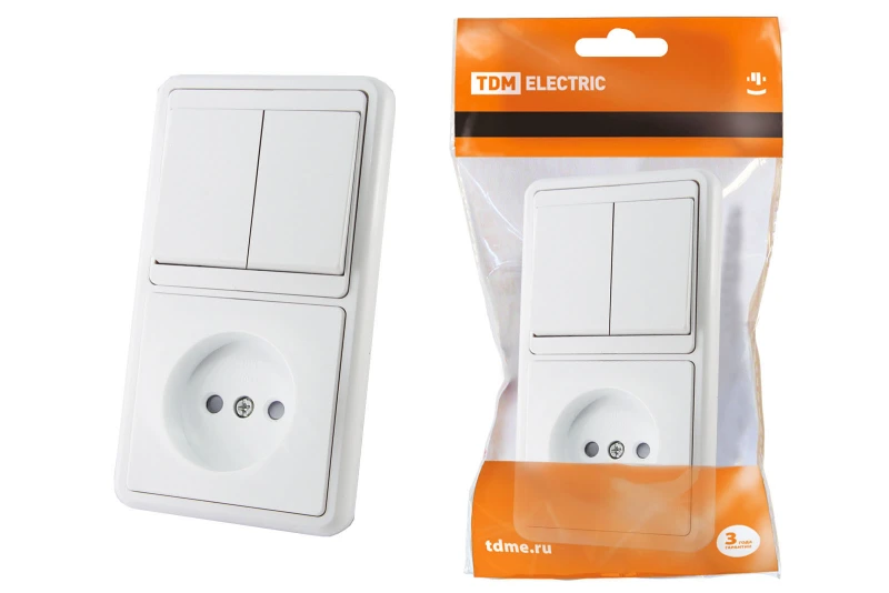 Блок комбинированный БКВР 2-х кл. выкл + розетка 2П с з/ш TDM