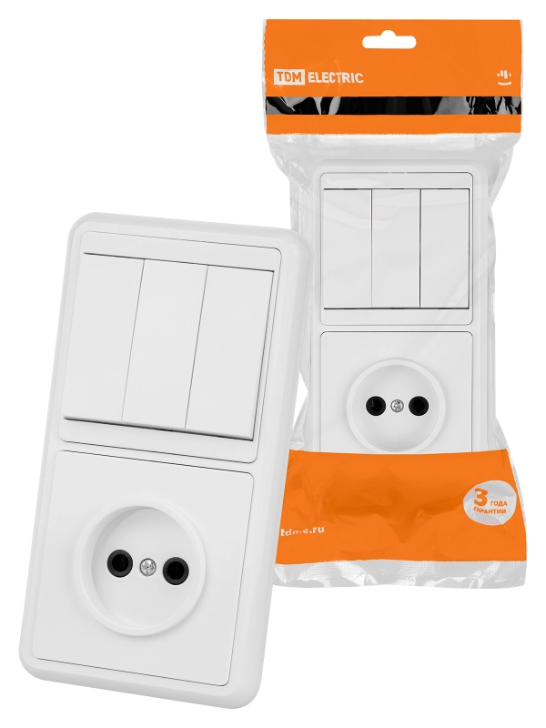 Блок комбинированный БКВР 3-х кл. выкл + розетка TDM