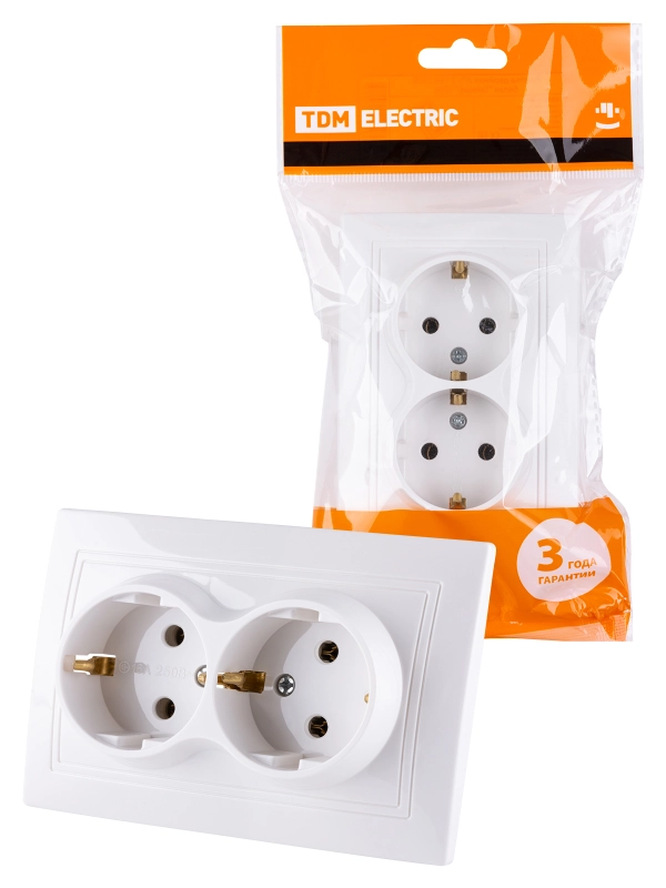Розетка двойная 2П+З 16А 250В белая "Таймыр" TDM
