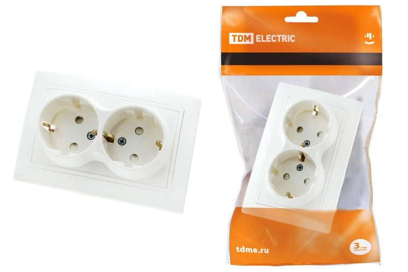 Розетка двойная 2П+З с защ. шт. 16А 250В белая "Таймыр" TDM