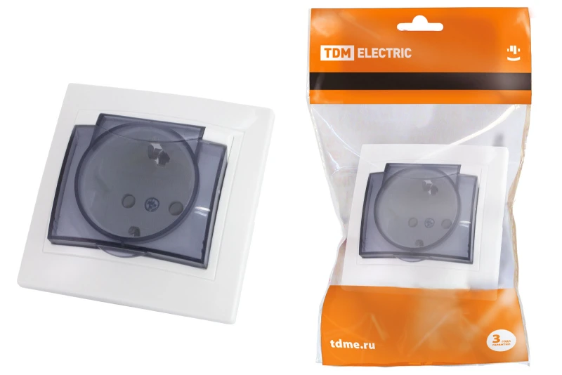 Розетка 2П+З с защ. шт. и крышкой 16А 250В IP44 белая "Таймыр" TDM