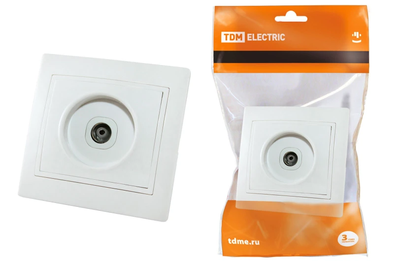 Розетка телевизионная простая (0-2400МГц, "мама") белая "Таймыр" TDM