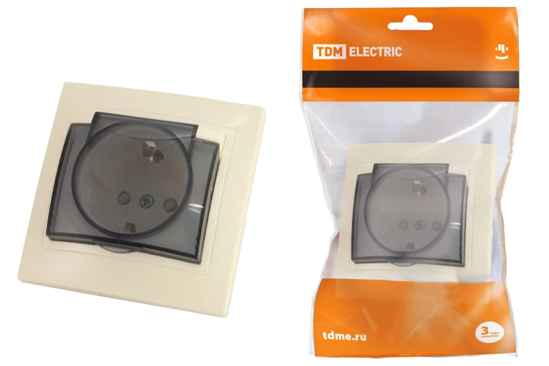 Розетка 2П+З с защ. шт. и крышкой 16А 250В IP44 сл. кость "Таймыр" TDM