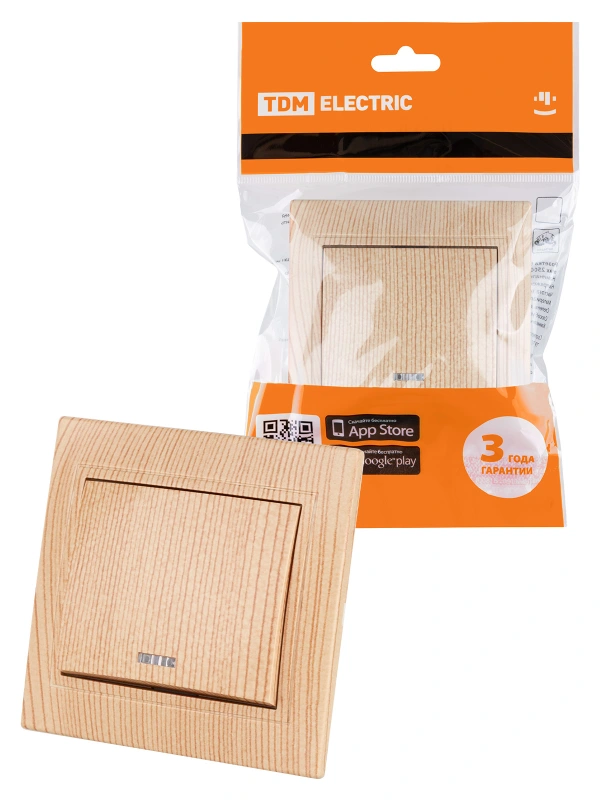 Выключатель 1 кл. с подсветкой 10А "ЭКО" (сосна) "Таймыр" TDM