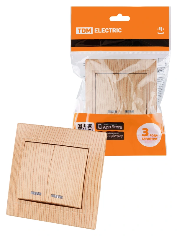 Выключатель 2 кл. с подсветкой 10А "ЭКО" (сосна) "Таймыр" TDM